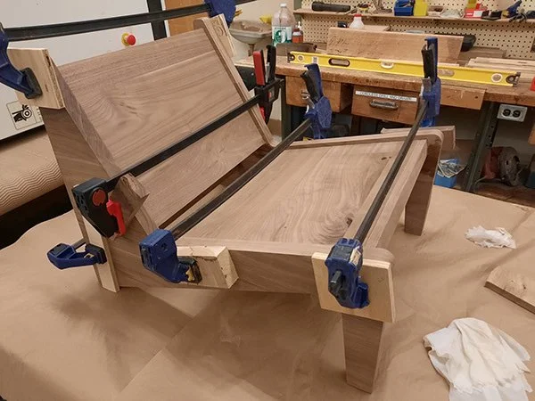 After creating the prototype, I did some rough sizing over my actual walnut boards before embarking on making the final piece.
