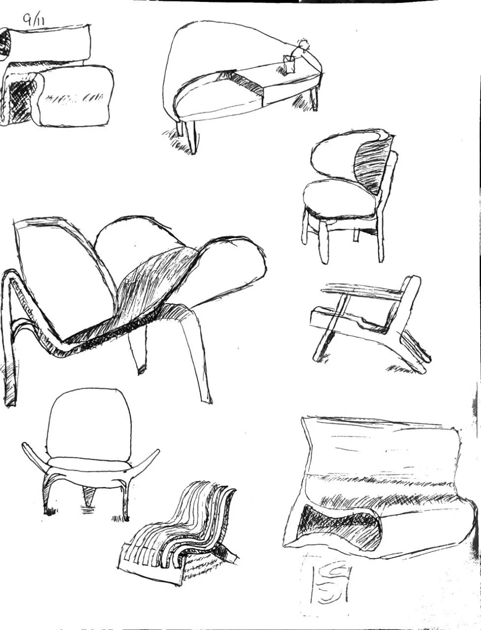 Like with most design it starts with a sketch. Furniture design along side CNC furniture design requires that the piece of furniture is well suited to the constraints of that approach to manufacturing.